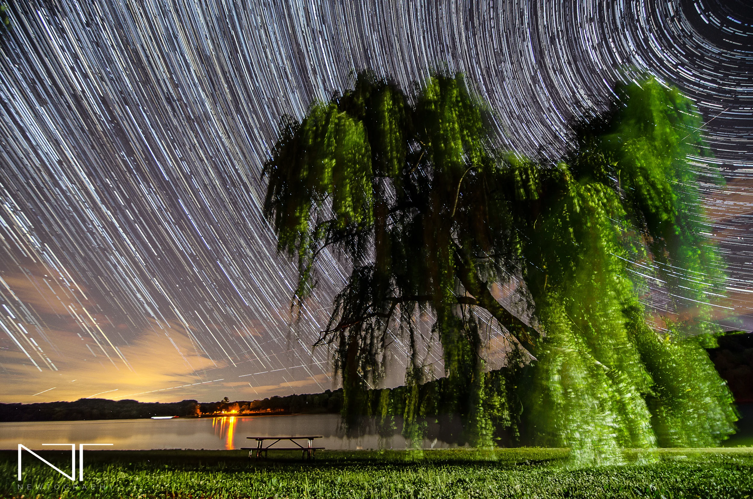 Another day was spent driving through beautiful Amish country in PA. I had high hopes for this area due to lack of major cities. However, there turned out to be enough small towns in the area to pollute the night sky enough to blot out the milky way for the most part. That was not going to stop me from getting a shot though. I settled on a spot near Blue Marsh lake and set up to get a star trail image that night. This is what I ended up with.